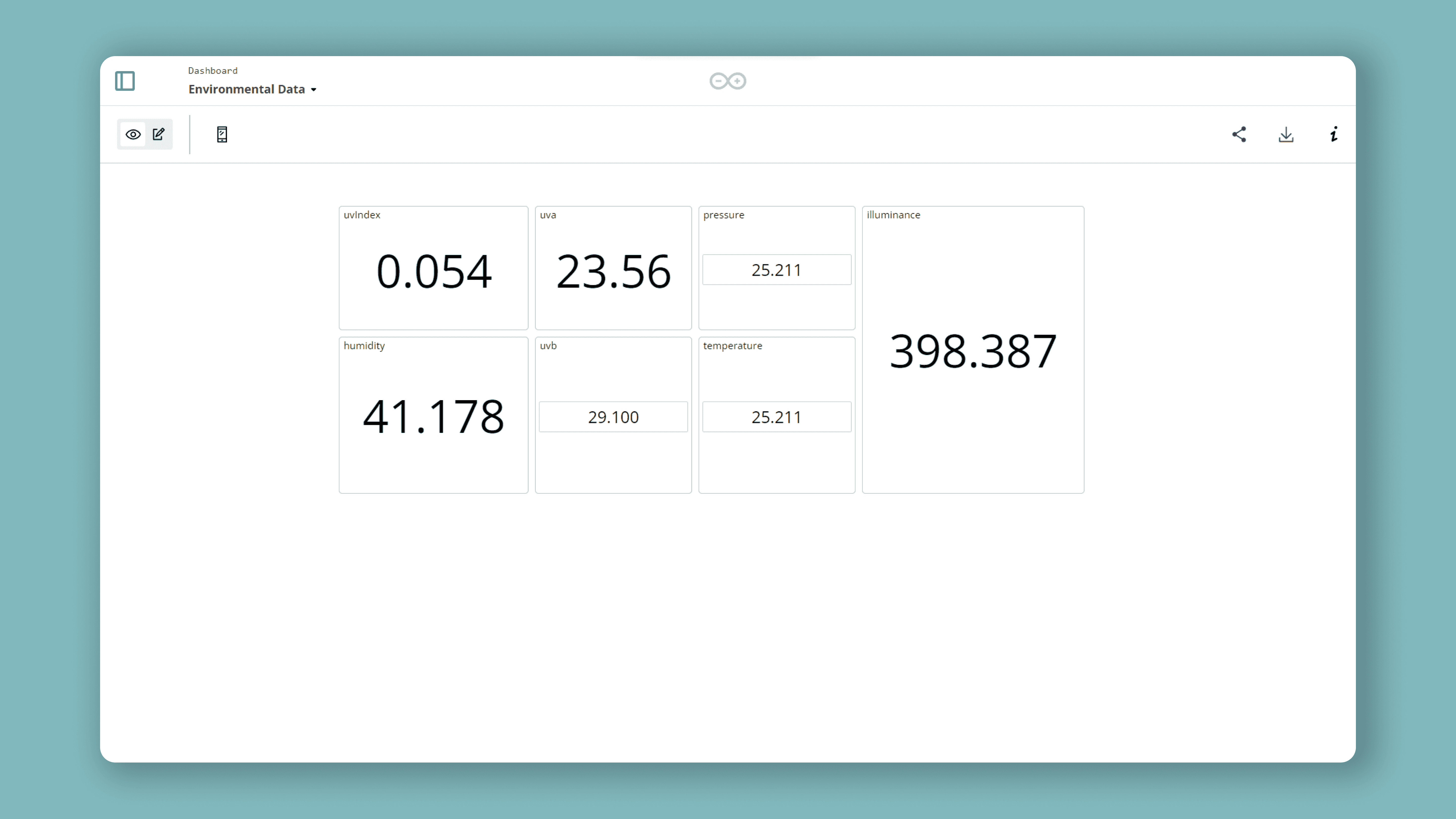 This means that whenever we read data on the board, it will also be visible in the Cloud dashboard, where we can create different ways of visualizing the data.