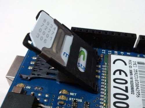 Once the SIM is inserted, mount it on top of an Arduino board.