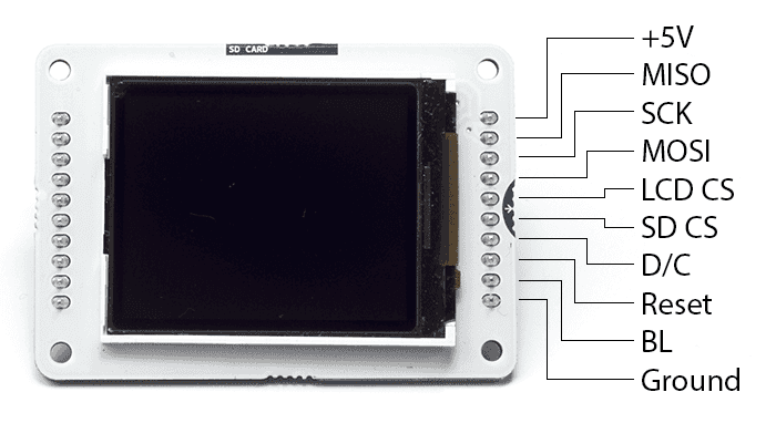 The Arduino LSD screen is a backlit LCD screen with headers. You can draw text, images, and shapes to the screen with the TFT library. There is an onboard micro-SD card slot on the back of the screen that can, among other things, store bitmap images for the screen to display.