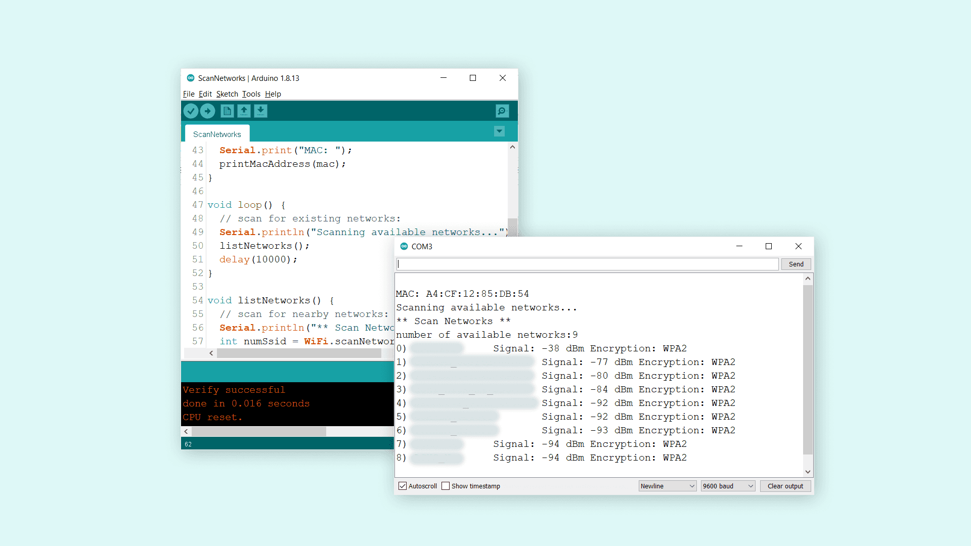 Scanning for Wi-Fi networks is a quite straightforward process. A device with a Wi-Fi module such as smart-phones, computers or development boards such as the MKR 1000 WiFi, search their surroundings, and get a response from nearby networks.