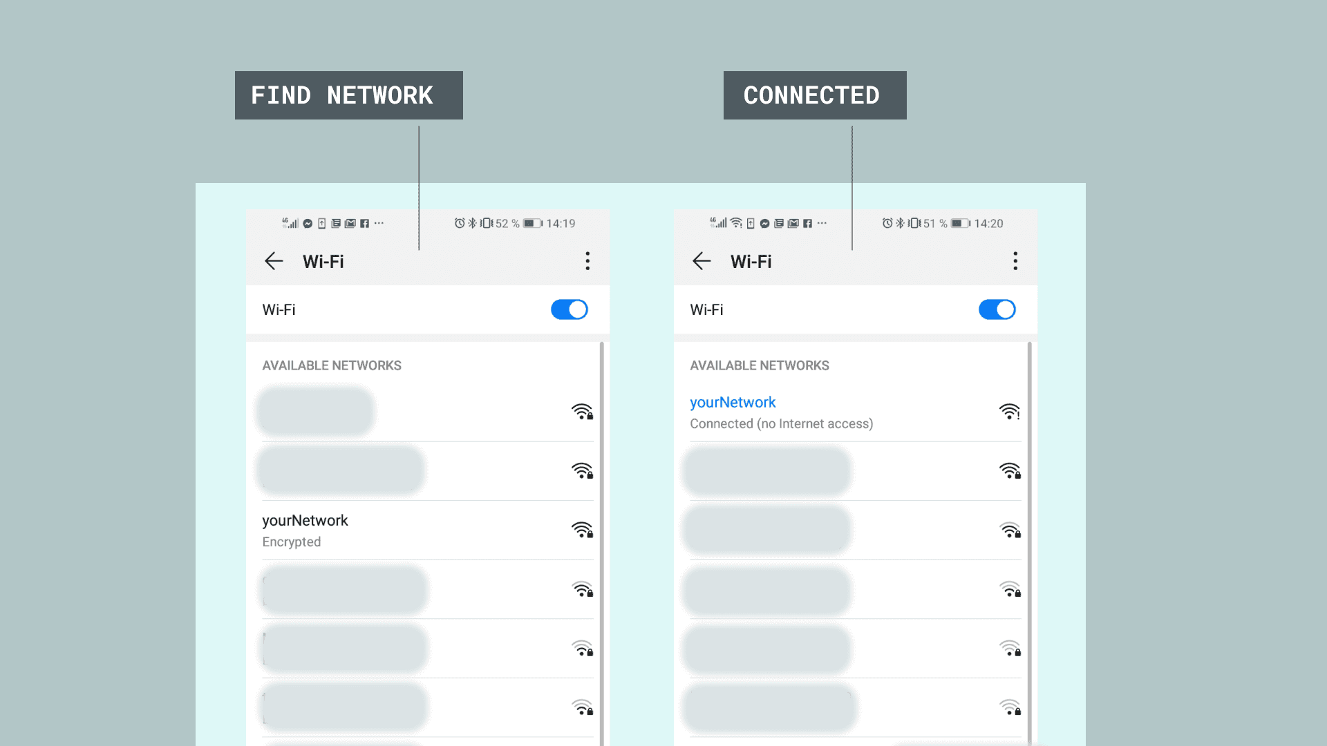 • On our phone or laptop, we can now find the access point in the list of available Wi-Fi networks.