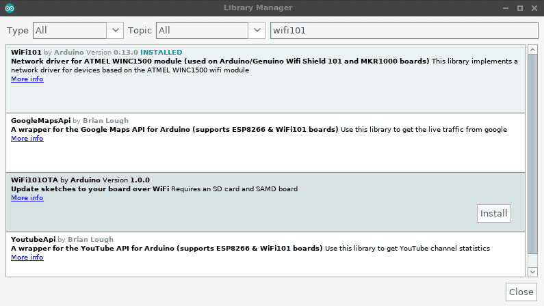 This example also works with a WiFi Shield 101 (retired) + Arduino Zero.