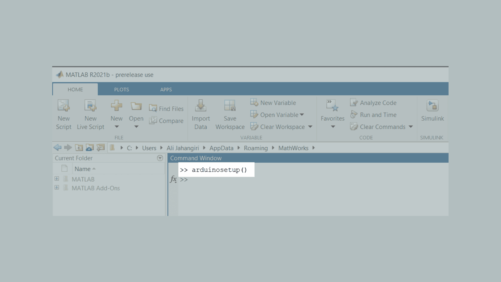 MATLAB® is an educational and industrial programming platform used to analyse data, perform simulations and carry out model based designs. Through an interactive communication with an Arduino board, you can expand MATLAB's capabilities, while also gaining access to a wide range of math, engineering and plotting functions. Check out the capabilities of MATLAB® over on the MathWorks website. In this tutorial, we will establish the connection with MATLAB via a USB and Wi-Fi connection. The MATLAB Support Package for Arduino Hardware must be installed (which may require a MathWorks account), in order to facilitate the communication between the MATLAB software on your computer and your Arduino board.