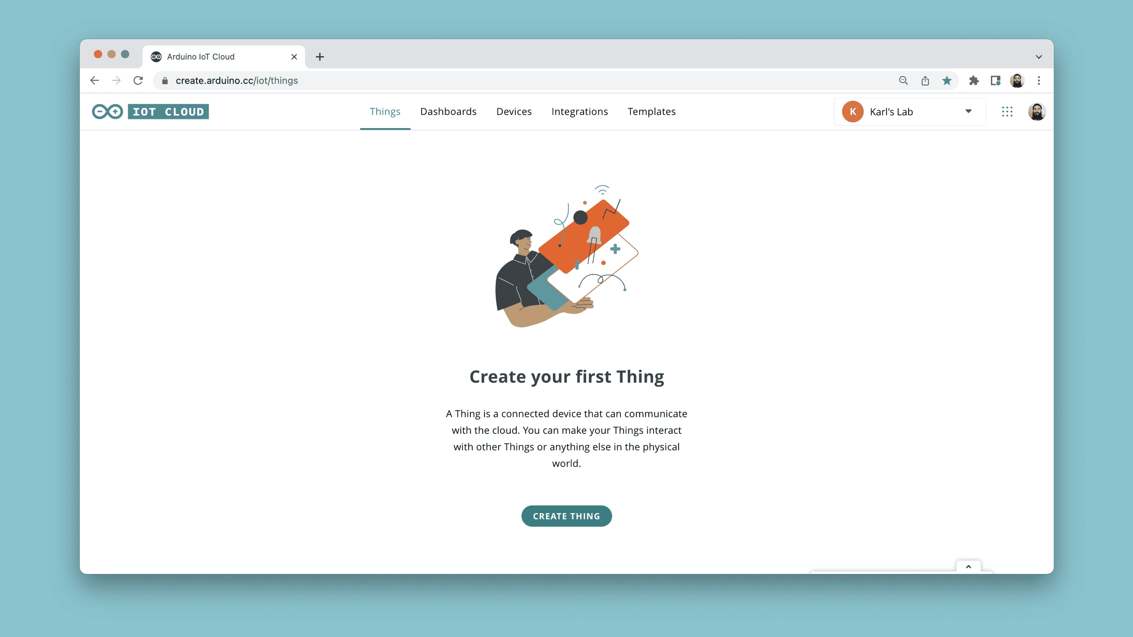 The next step is to create a new Thing. Navigate to the "Things" tab, and click on "Create Thing".