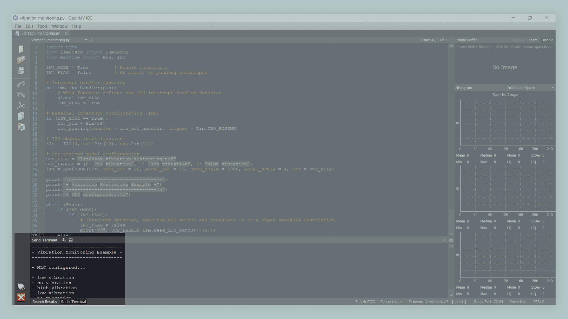 - Print motion activity in the Serial Terminal of the OpenMV IDE.