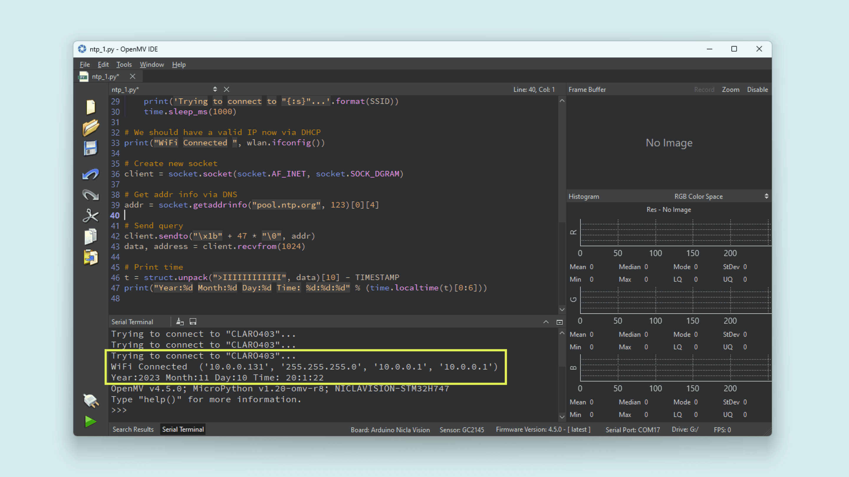 Copy and paste the code below into a new sketch in the OpenMV IDE.