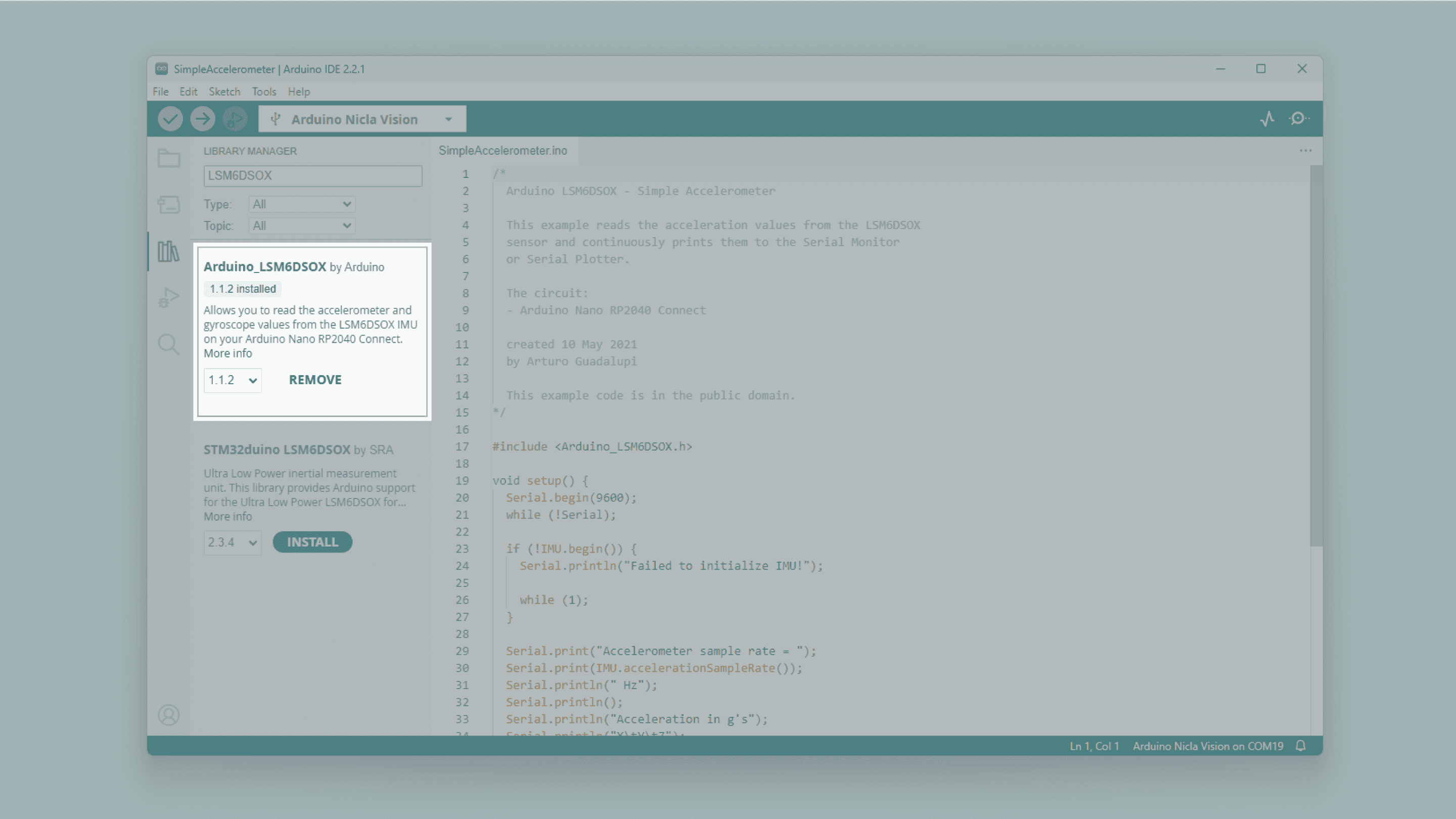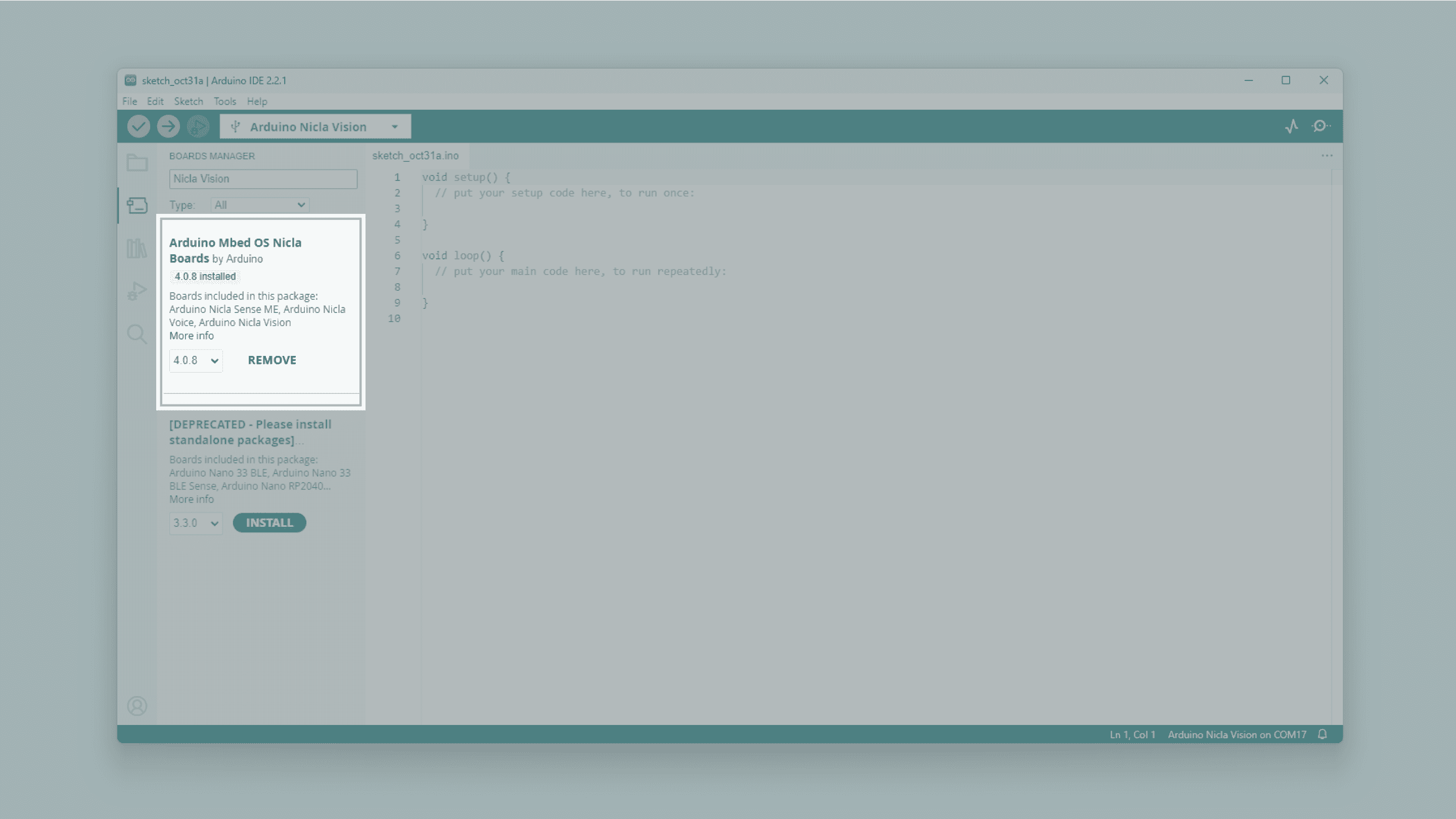 Installing the Arduino Mbed OS Nicla Boards core in the Arduino IDE
