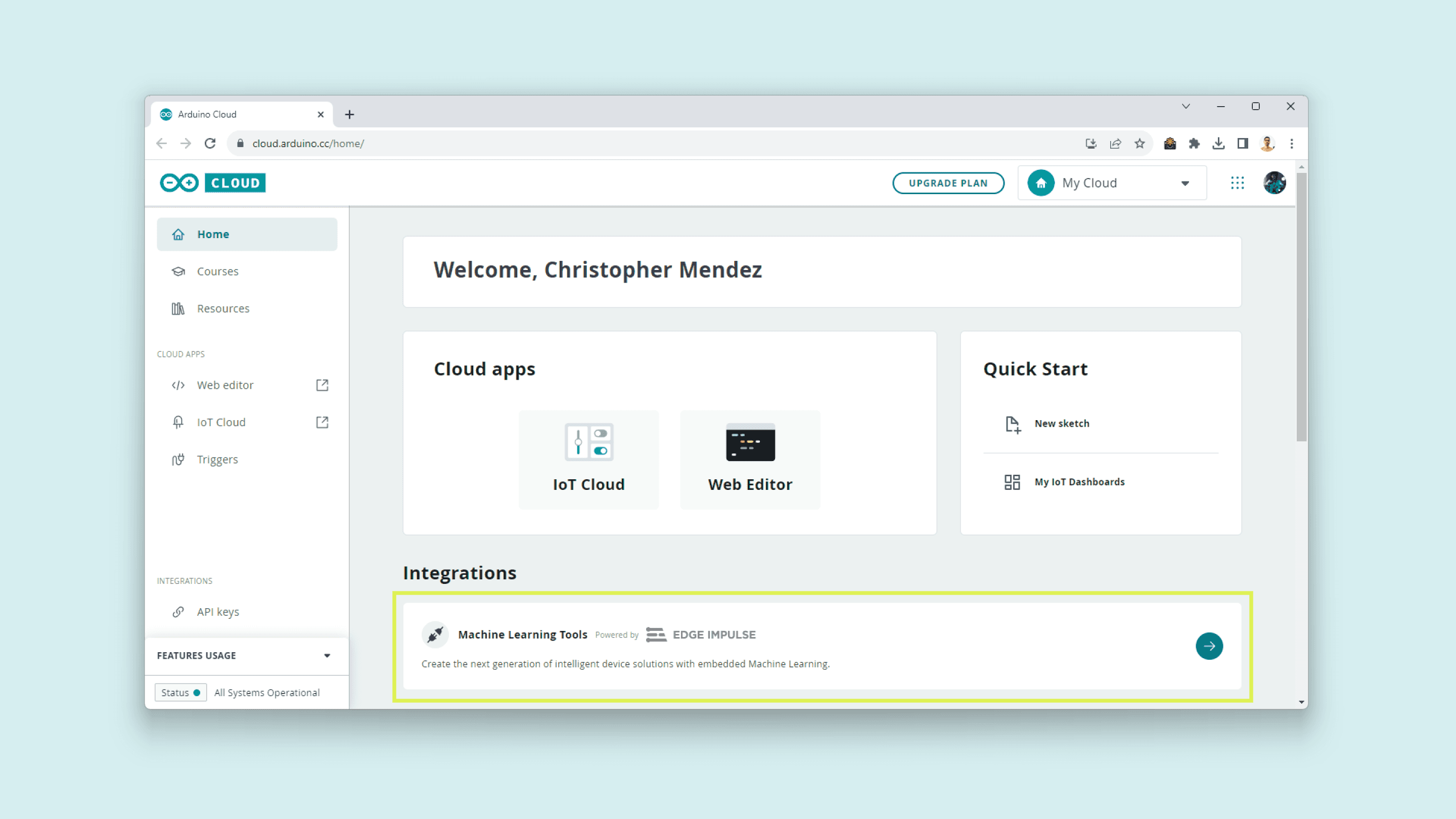 • To use the Arduino Web Editor or Arduino Cloud, the Arduino Create Agent must be running on your computer. You can install the Arduino Create Agent here.