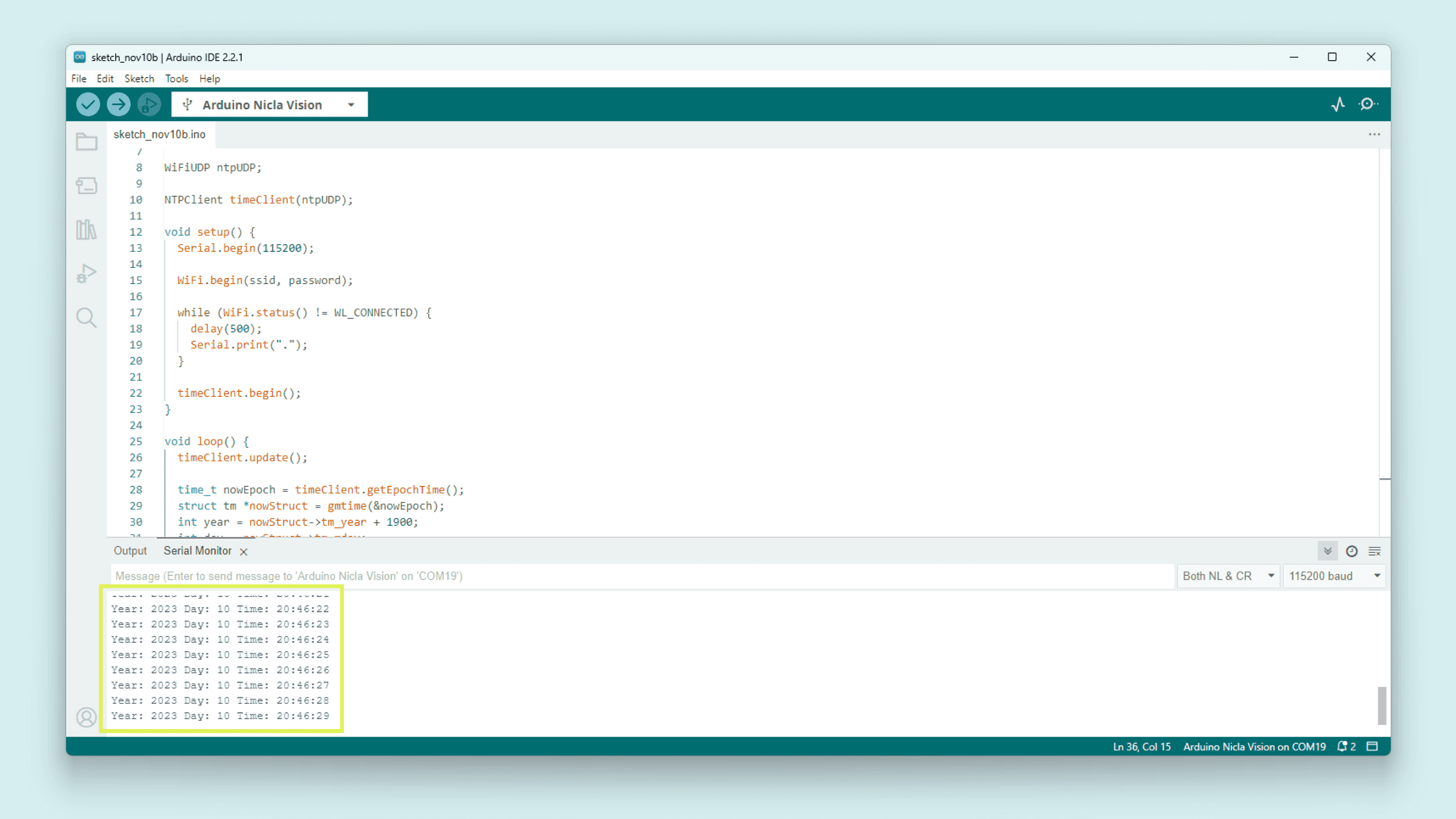 sketch. We will use this example to verify the board's connection to the IDEs and that the Nicla Vision core and the board itself are working as expected.
