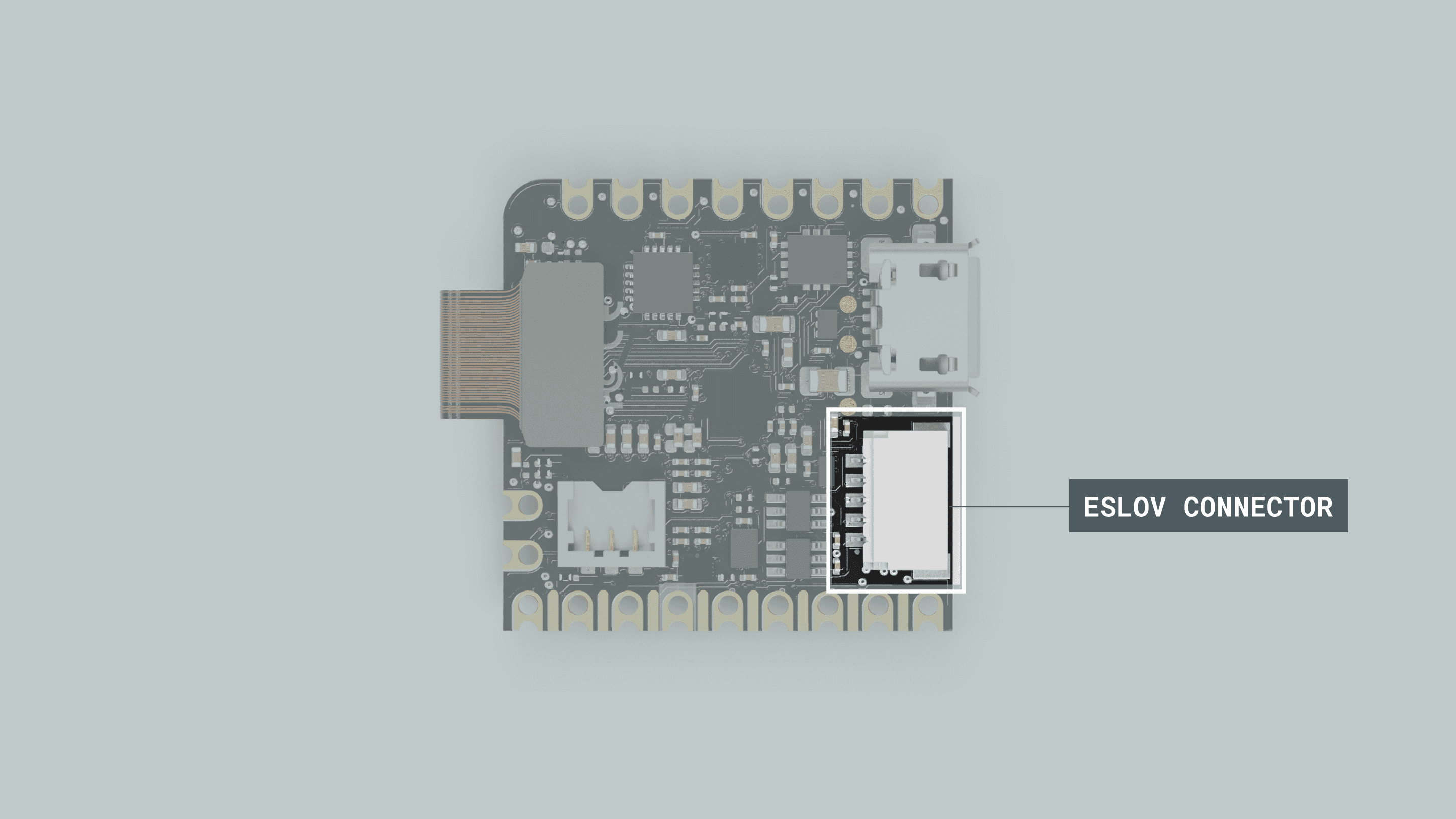 The ESLOV connector is a small 5-pin connector with a 1.00 mm pitch; the mechanical details of the connector can be found in the connector's datasheet.