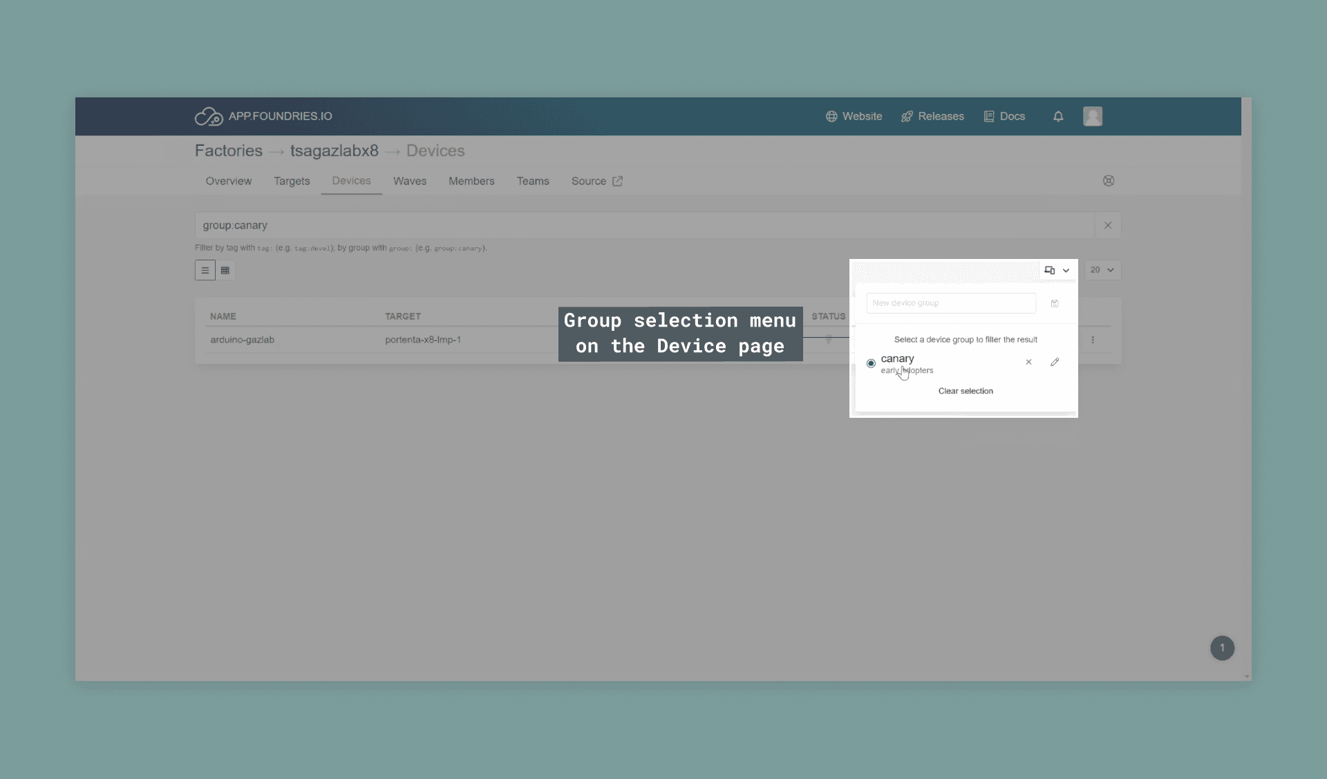 On your FoundriesFactory device page, you can sort and view devices by the group.