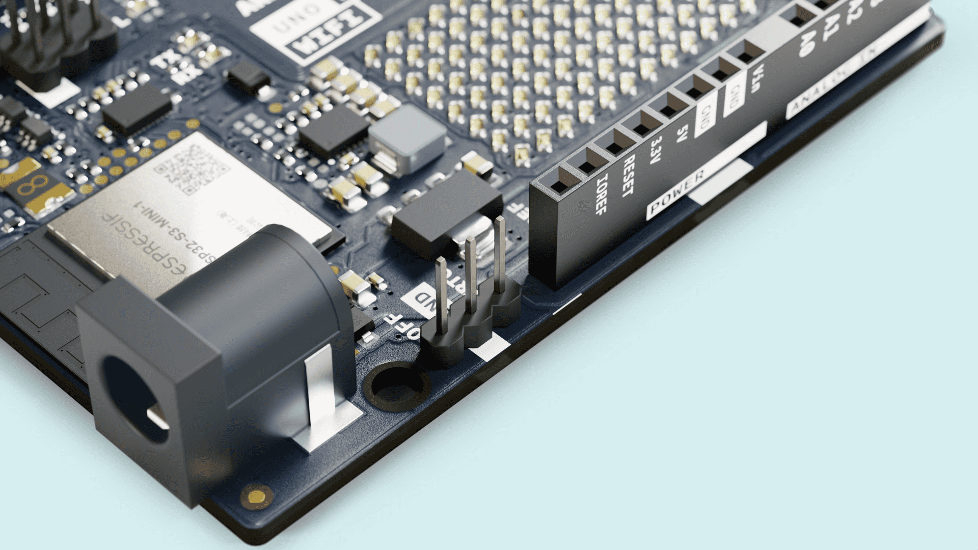 The OFF pin on the Arduino UNO R4 WiFi board lets you turn the boards onboard 5 V power supply off, basically turning off the board.